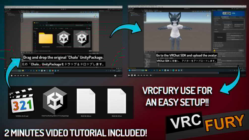 Chalo Face Tracking Add-on .unitypackage. 2 Minutes video tutorial in case you need it! (EN and JP). Read me files.