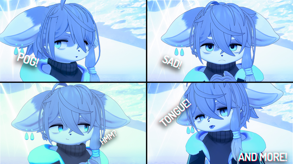 Compatible with all face tracking standards! (ARKit, FACS, SRanipal, etc). Tested and made for the Quest Pro with "Unified Expressions", eyes, eyebrows, jaw, lips and tongue!