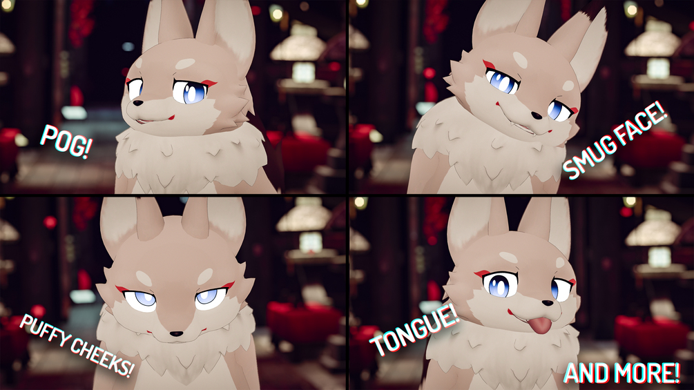Compatible with all face tracking standards! (ARKit, FACS, SRanipal, etc). Tested and made for the Quest Pro with "Unified Expressions", eyes, eyebrows, jaw, lips and tongue!