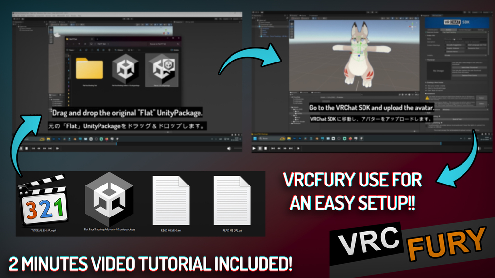 Flat Face Tracking Add-on .unitypackage. 2 Minutes video tutorial in case you need it! (EN and JP). Read me files.
