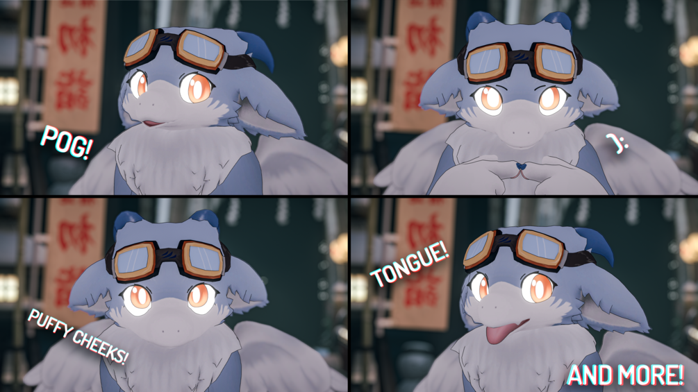- Face Tracking via VRCFaceTracking v5+ OSC application. https://github.com/benaclejames/VRCFaceTracking